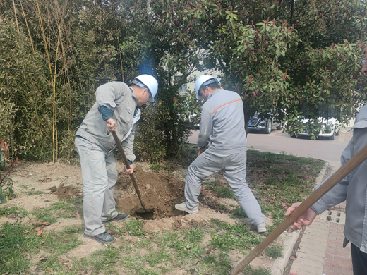 活动开始前,公司领导作动员讲话,指出本次活动是发挥党员先锋模范作用、践行工会服务职能的生动实践,号召全体人员以劳动为笔、绿色为墨,携手绘就整洁优美的厂区画卷。随后,大家迅速分组、投入劳动:挥锹挖坑、扶苗培土、清理垃圾、修剪绿篱……现场气氛热烈,秩序井然。