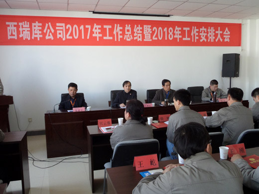 岁尾年末,辞旧迎新。2018年2月11日上午,西瑞库公司召开2017年工作总结和2018年工作安排大会,会议由库公司副经理张新平主持,西瑞集团总经理曹国梁、副总经理高增红出席会议,西瑞库公司干部员工约50余人参加了会议。