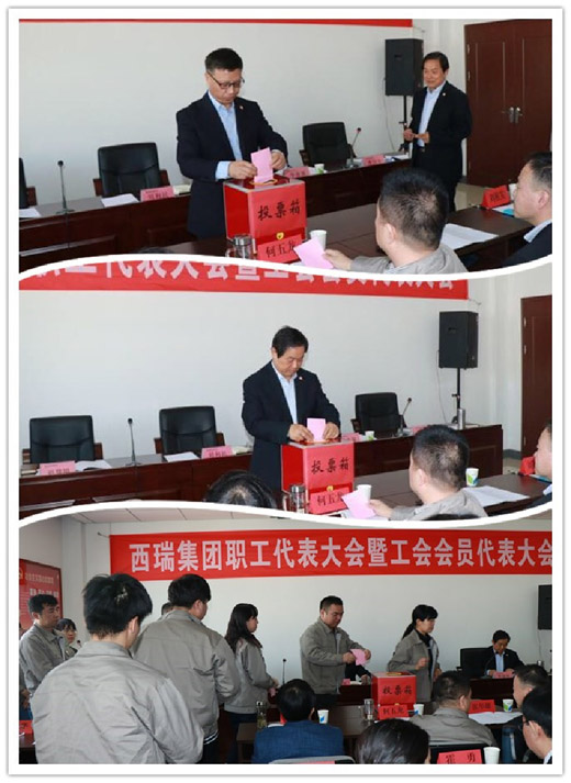 会议审议通过《选举办法》,总监票人、监票人、计票人名单,《西瑞集团工会委员会委员替补、增补办法》,工会新一届委员会委员候选人名单。与会代表郑重投下选票,选举产生集团工会主席及新一届委员会。