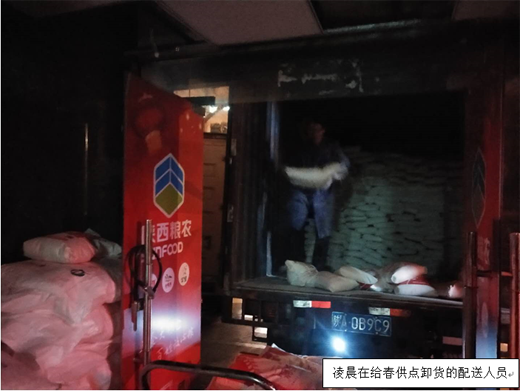 为保障产品第一时间送达,提升公司配送效率和客户满意度。客户部提前谋划,合理安排物流人员夜晚装车,凌晨配送,在深夜气温已达零下7、8度情况下,90后业务员温约拿顾不上感冒高烧,依然坚持陪同配送人员一起为客户卸货,卸完货还要等待天明客户来验收。