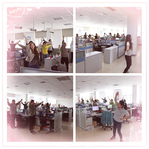 工间操活动是集团从5 月20日起在兴平园区办公楼推行的一项常态化健身活动。内容以第九套广播体操为主,分别由预备节、伸展运动等9小节构成,共做2遍。
