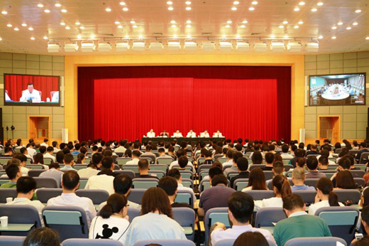 中央指导组有关同志、国家粮食和物资储备局机关及所属事业单位500余名党员干部在主会场参加会议,各垂直管理局党员干部在各地分会场参加会议。