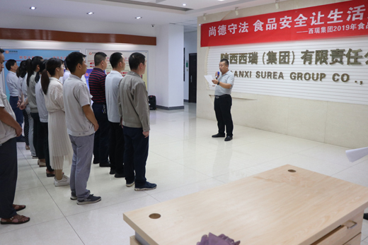 “我郑重承诺:忠诚企业,恪尽职守,珍爱生命,生产精品!我坚决做到:遵守法律法规,遵守规范规程,捍卫食品安全,不出次品,不非法添加,不有毒有害。”铮铮誓言铿锵有力,异口同声击玉敲金。6月20日,在全国2019食品安全宣传周到来之际,西瑞集团干部职工用这壮丽的誓言拉开了“尚德守法、食品安全让生活更美好——西瑞集团在行动”系列活动的序幕。