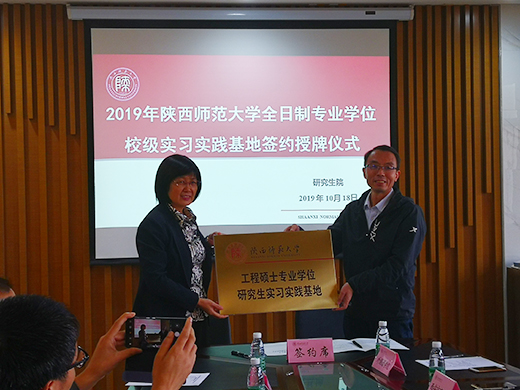 10月18日,西瑞集团研发中心主任何洪涛和业务主管李亮应邀参加陕西师范大学全日制专业学位校级实习实践基地签约授牌仪式。