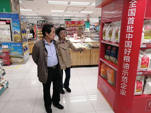 10月21日,西瑞集团董事长曹国梁对西安城区部分商超西瑞门店“好粮油”专柜进行巡察。