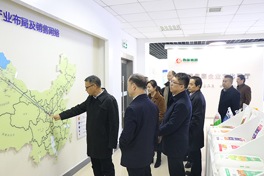 12月5日,新疆维吾尔自治区人民政府副秘书长高志敏带领考察组8人在陕西粮农西瑞兴平园区进行调研。陕西省粮食和物资储备局副局长王晓森、陕西省农业农村厅种植业处副处长吴江力一同调研。陕西粮农集团党委副书记、总经理王桂欣,副总经理刘利民;西瑞集团党委书记、董事长曹国梁等陪同。各方就粮食产业发展形势及产业转型升级进行了深入的交流与探讨。