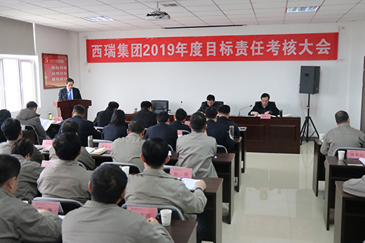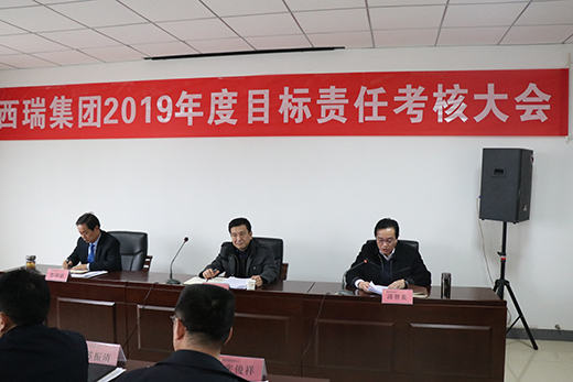 2020年1月2日上午,粮农集团党委副书记、工会主席苏琦带队对西瑞集团2019年度的目标任务完成情况进行了全面考核。西瑞集团党委书记、董事长曹国梁作《2019年度企业法定代表人述职报告》,会议由粮农集团副总经理潘智炎主持。