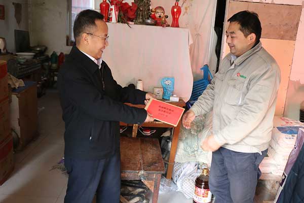 王生林总经理详细了解了边朝辉及家人的居住环境和健康状况,鼓励边朝辉增强信心,积极面对困难,转变销售思路,丰富产品种类,提高收入。同时表达了粮农集团领导对困难职工的关心与关怀,向其及家人致以春节的祝福和问候。
