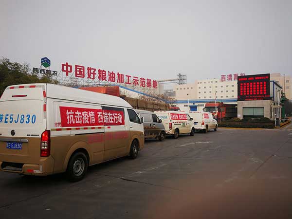 为实现粮油产品精准投放、及时供应,西瑞集团严格组织落实疫情防控,开足马力抓生产保供应,面粉加工24小时生产不间断,主动对接省内各地市粮油物资供应需求,百余辆应急保障车辆奔赴社区乡村一线,目前已承担了杨凌示范区、鄠邑区和武功县的应急成品储备任务,同时保障西安市区441家大型超市、周边县区185个经销商和15个自营店的粮油供应。