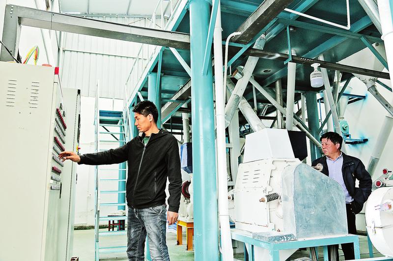 洛南县景村镇王涧村,一座现代化磨坊正在运转。占地1800平方米的厂房里机器轰鸣,这套现代化的机器每小时就可以加工1吨玉米,玉米粒经传送带进入原料口,工人只需操作控制台选择程序,即可生产出玉米糁、玉米面等产品。