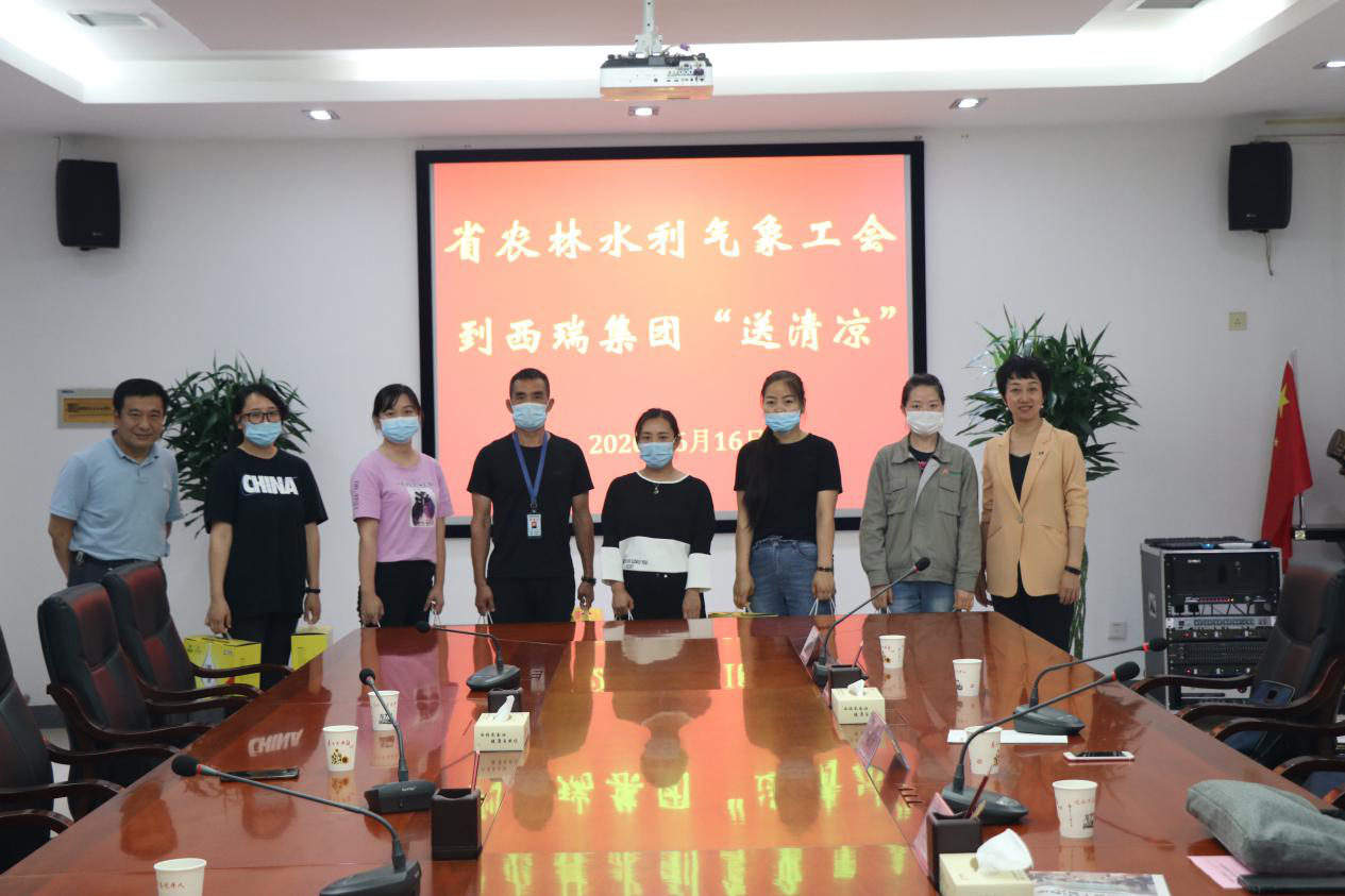 会后,调研组还代表省农林水利气象工会向西瑞集团“送清凉”,为职工送来了蜂蜜水、冰糖、绿豆等降温品,并表示了亲切慰问。