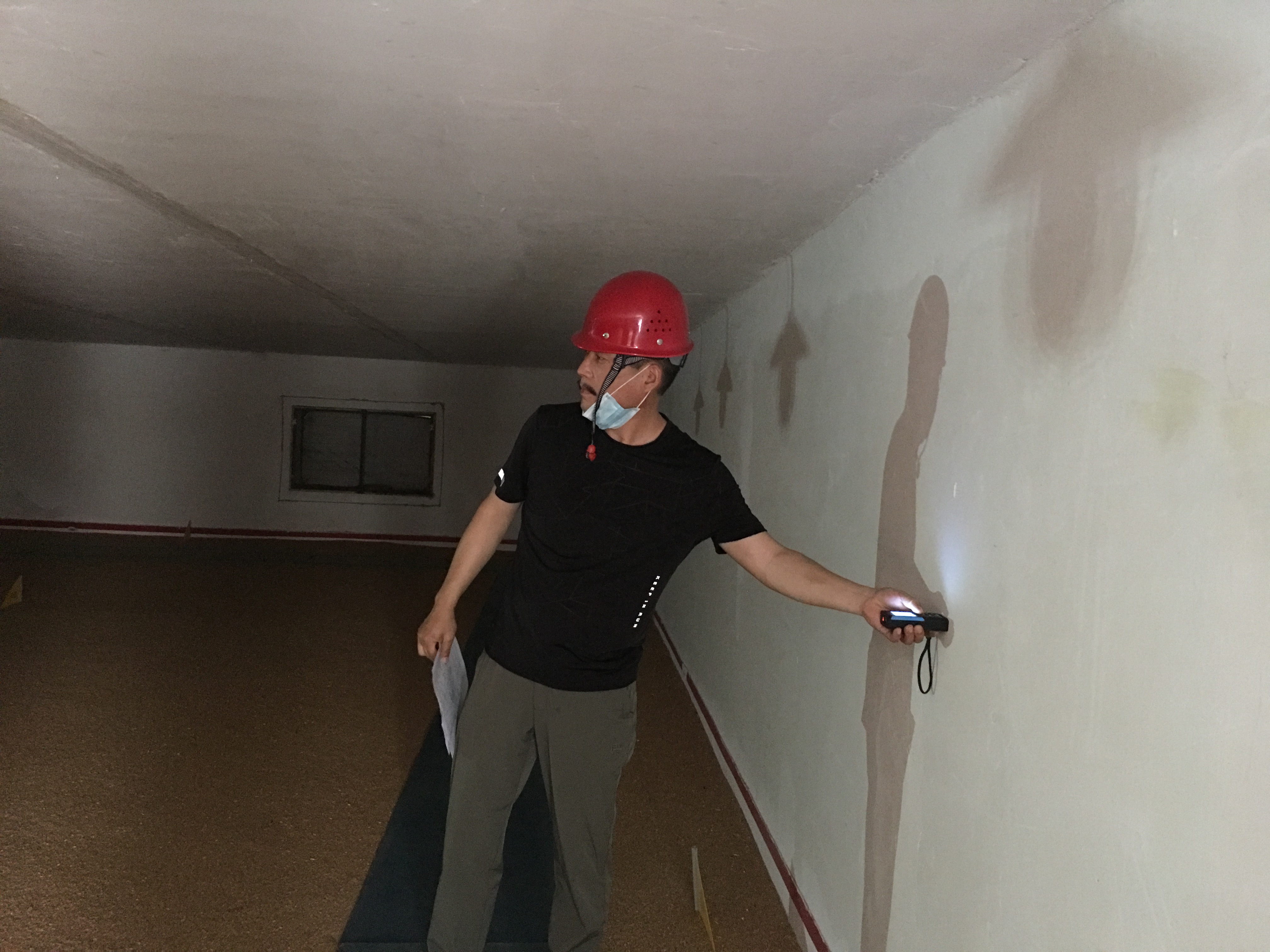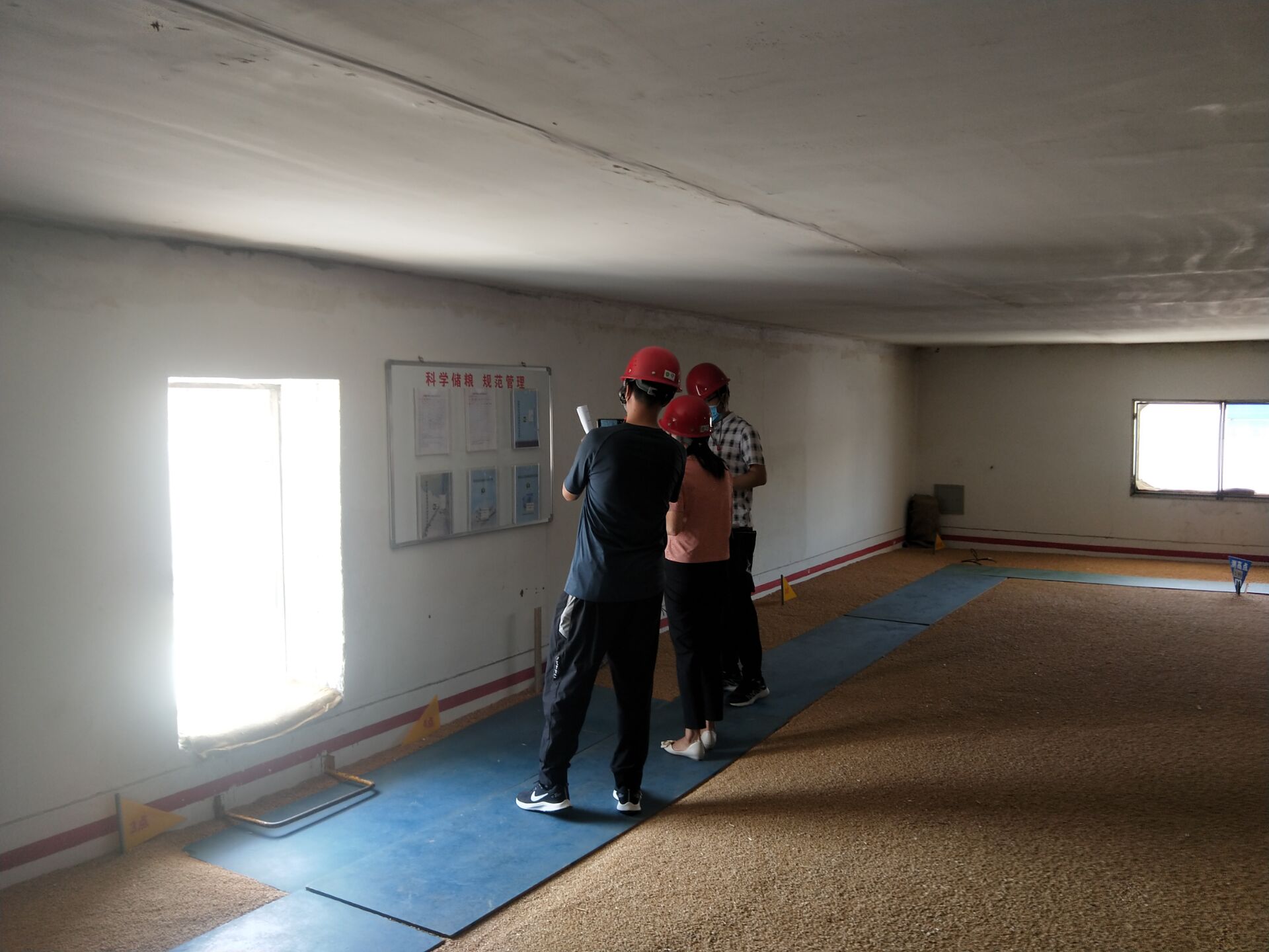 图为:检查组人员仓内测量粮堆长度