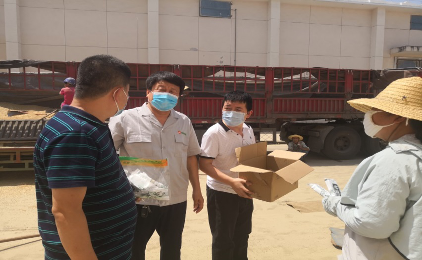 盛夏时节,骄阳似火。西瑞储备库公司夏粮收购工作如火如荼。7月7日,公司总经理张新平带领班子成员慰问战斗在一线的员工们,并送上蜂蜜水、冰糖和绿豆等防暑物品,给他们带去夏日的一丝惬意、一缕清凉。