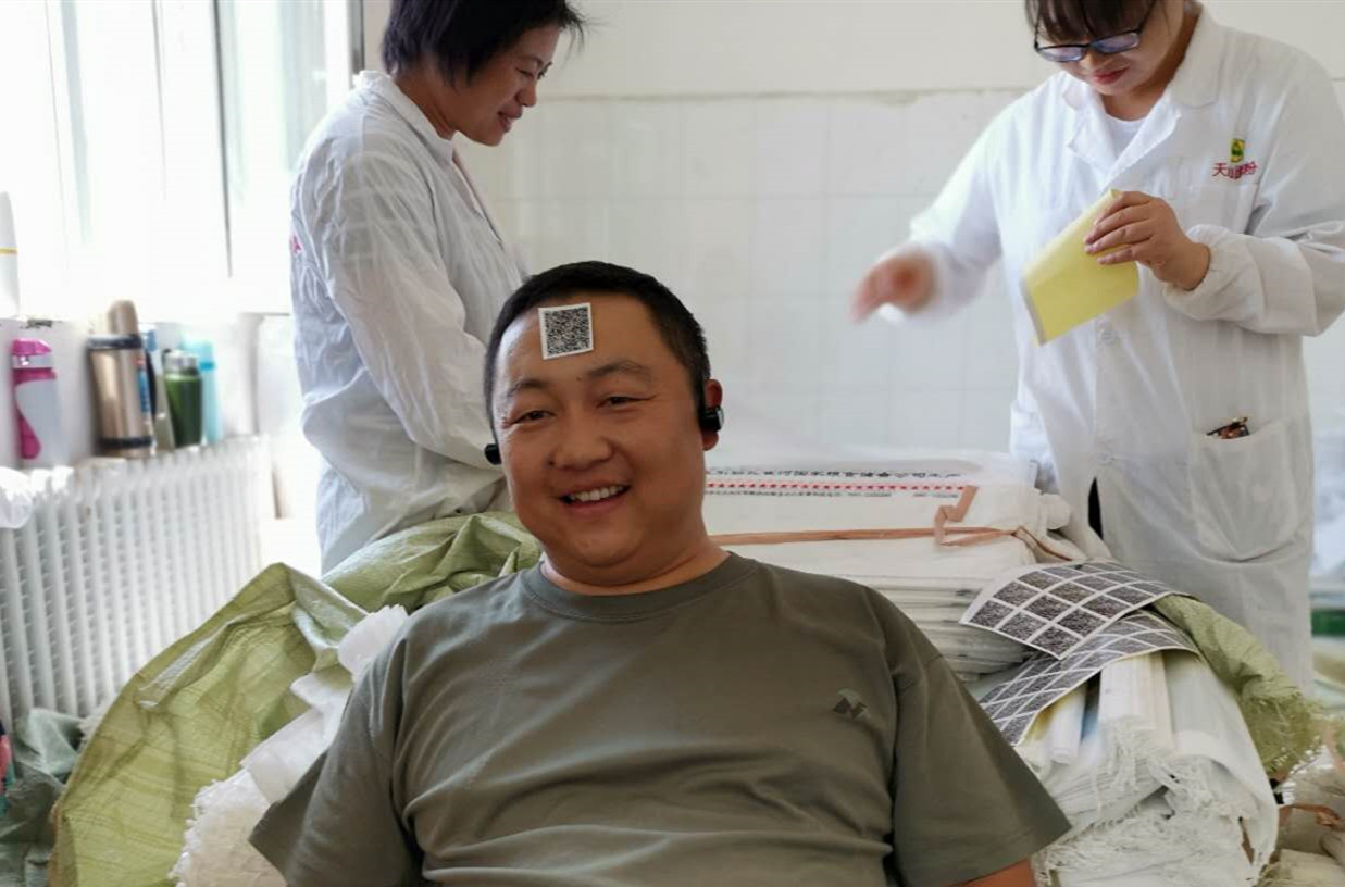 在粘贴产品质量追溯二维码的工作之余,员工拍下了这张诙谐的照片