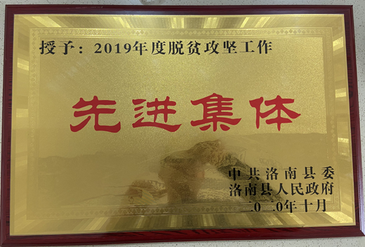 10月23日上午,西瑞集团荣获洛南县政府“2019度脱贫攻坚工作先进集体”荣誉表彰。