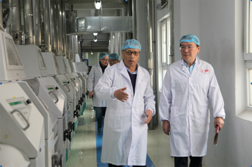 孙波一行首先前往集团所属西瑞兴平工业园区,先后参观了大米成品库、面粉生产车间、粮食储备库、产品研发中心和展品展厅,详细了解了储粮安全、粮油加工、产品研发、质量管控等有关情况。