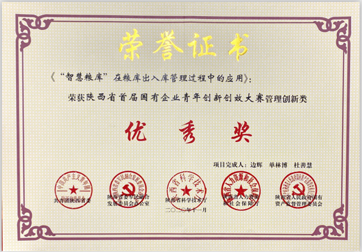 近日,从陕西省国资委系统青年创新创效大赛组委会传来好消息,西瑞储备库公司“智慧粮库在粮库出入库管理过程中的应用”项目从激烈角逐中脱颖而出,荣获管理创新类优秀奖。