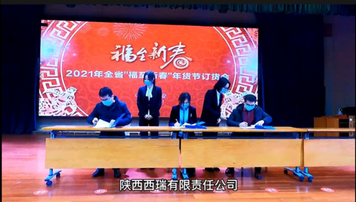 12月21日,在中国邮政集团陕西省分公司2021年全省“福至新春”年货节订货会上,西瑞集团副总经理白晧代表公司与邮政集团陕西省分公司签订“抗疫保供”合作协议,充分展示了西瑞集团作为省属粮油应急储备单位稳市场、保供应的责任和担当,进一步提升了西瑞品牌的知名度,双方合作结下了深厚的友谊。
