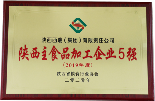近日,西瑞集团及其下属经营公司被陕西省粮食行业协会授予陕西主食品加工企业5强等5个荣誉称号。