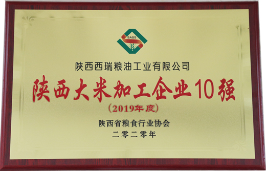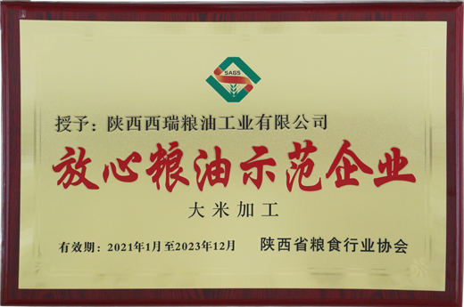 其中,西瑞集团被授予“陕西主食品加工企业5强”荣誉称号,陕西西瑞粮油工业有限公司荣获“大米加工放心粮油示范企业”“陕西大米加工企业10强”荣誉称号,陕西天山西瑞面粉有限公司、陕西粮农富平西瑞面粉有限公司荣获“陕西小麦粉加工企业10强”荣誉称号。
