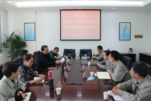 2月19日,省粮食和物资储备局二级巡视员郭明带队,省军粮供应中心主任高生伟、副主任李艳一行,对西瑞集团军粮政策执行情况进行检查。