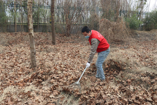 随后,大家走入宿舍公寓楼前,对绿化带进行了清扫,将雷锋精神转化为具体行动。活动人员挥动扫把、耙子,经过一番清理,覆盖在干枯树叶下的草叶、蓝色小花都伸展出身姿,呈现一片生机盎然的景象。