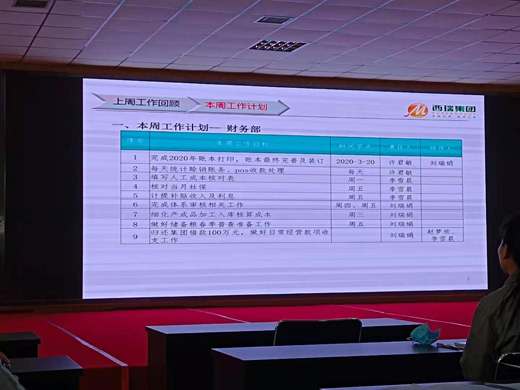 会上,各部门负责人也采用PPT演说形式对周工作经行了总结和部署,刘军对各部门提出的问题一一答复并提出要求。