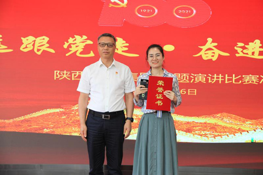 5月26日,富平西瑞面粉公司职员李蓓蕾在粮农集团举办的“永远跟党走 奋进新征程”主题演讲比赛中荣获一等奖。