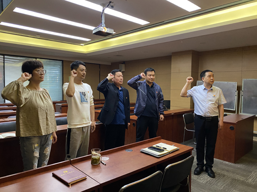 全体党员佩戴党徽、面对党旗、举起右手、紧握成拳,在任伟的带领下,以昂扬饱满的热情,铿锵有力的语言,郑重地宣读入党誓词,重温对党庄严而神圣的誓言,感受心灵的震撼和洗礼,再次坚定为共产主义事业奋斗的理想信念:不忘入党初心,牢记光荣使命。