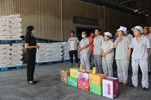 西瑞兴平园区里工作在生产一线的员工正面临着夏“烤”。为做好防暑降温工作,保障一线职工的在炎热的天气下顺利开展工作,集团纪委书记刘慧娟、总会计师康银虎带着苦荞茶、冰糖、饮料和方便面来到一线职工的岗位上,将慰问品一一送到他们手上,叮嘱他们在高温天气下合理调整工作时长,做好防暑保护,确保安全度夏。