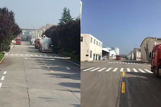 道路标线的划置为园区道路锦上添花,使原有的通行大道变得美观大气,更为行车安全提供了有利保障。此次作业,共划标线约4800余米。