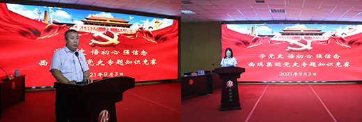 为进一步推动全体党员干部学史明理、学史增信、学史崇德、学史力行,在全集团掀起党史学习教育新高潮,9月3日,西瑞集团举办了“学党史、悟出心、强信念”主题党史知识竞赛。