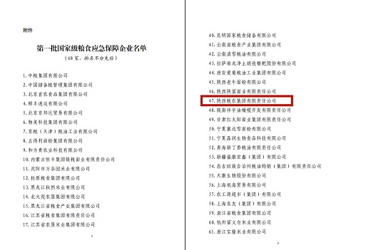 近日,国家粮食和物资储备局近日公布第一批国家级粮食应急保障企业名单,陕西粮农集团有限公司位列其中。