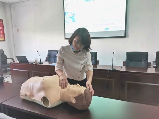 魏老师从突发意外的应急处理和紧急救护,心脑血管疾病的预防和改善,疫情病毒、防护用品区分及科学防疫常态化,常见职业病预防和改善等4个方面详细讲解了相关健康知识,并对CPR急救和徒手心肺复苏术等进行了现场实操教学,培训职工积极参与模拟训练,就穴位按摩及紧急救护知识与老师频繁互动,现场气氛热烈活跃。
