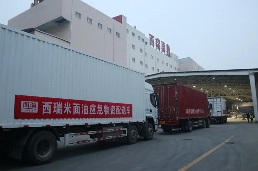 西瑞面粉紧急配送华润万家总部大库300余吨,直配华润门店100余吨,满足西安市民终端消费需求。