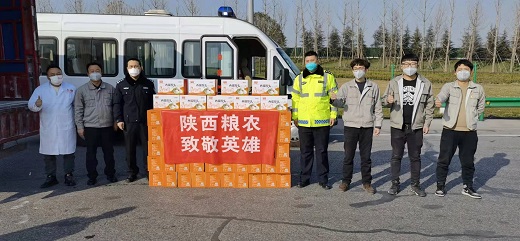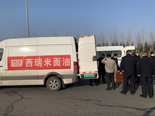27日,西瑞集团米业公司紧急安排馒头车间加班加点生产,力争保质保量完成24000个馒头生产任务。28日上午10时,两辆贴有“陕西粮农 致敬英雄”横幅的满载着24000个爱心馒头的货车,按照防疫防控要求驶进河池寨服务点,经与西安市公安局交通警察支队沟通协商,顺利将1000盒共计24000个“西瑞馒头”分发到西安市交警支队下辖的各大队。