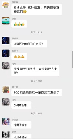 西瑞米业公司总经理刘军率先带领班子成员赶赴车间一线,带头号召西瑞米业公司在岗人员前来支援。一声令下,八方来援。公司销售部、仓储部、生产部、购销部、财务部、办公室等人员立即前往;有加完班转战过来的;有兄弟公司听闻消息赶过来的。志愿者们纷纷到场,迅速进入状态,紧锣密鼓的参与到“战斗”中,只听馒头生产线传出阵阵工作声。