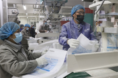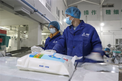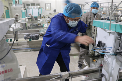 1月2日傍晚,西瑞兴平园区灯火通明,运输车辆川流不息,市场保供繁忙有序,7时30分,由集团党委书记、董事长吴兴文帅领的“战狼队”队员全副武装集结完毕,到达面粉公司生产打包车间主“战场”,立即开始战斗行动。