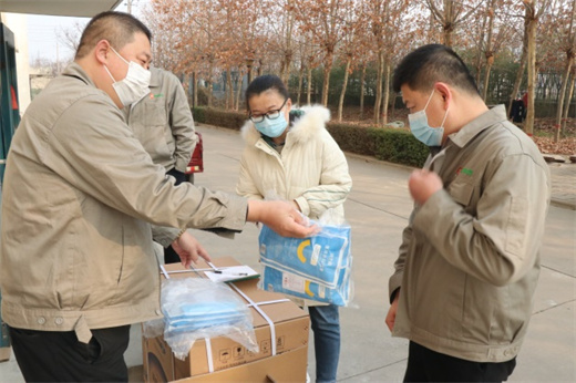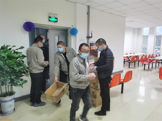 西瑞集团第一时间将口罩和苹果发给驻守园区的干部职工手中,将这份温暖传递给每一个奋战在抗疫保供一线的西瑞人。