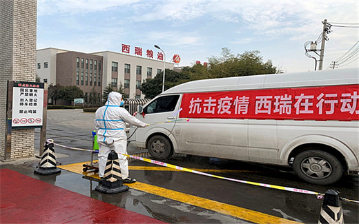 12月23日起,西瑞集团兴平园区防控措施提级管控,园区实行闭环管理,在入园处设置“疫情防控检查点”,对所有外来人员、配送车辆进行严格消杀,提高货运车辆管控级别,业务办理全程执行“非接触式作业”方式,杜绝交叉感染。