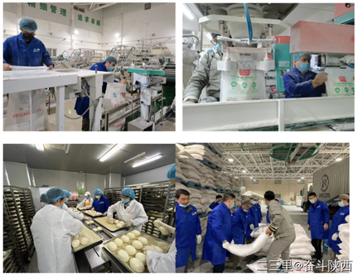 民以食为天,保生产就是保民生。自疫情管控升级以来,西瑞集团干部职工驻厂为家,压实储粮、生产、加工责任。现有200余名驻厂职工坚守岗位,加班加点促生产、保供应,见证无数个皓月长明的夜晚。1月2日以来,随着订单量不断增大,集团保持加工车间24小时开机生产,保证小麦原粮、包装材料不短缺,保证市场供应不涨价、不断挡。立即启动应急保供预案,成立数个临时突击队,大家在完成自身工作任务的同时走进面粉、大米、馒头生产车间支援生产加工,形成“领导班子靠前指挥,党员骨干冲锋在前,青年员工紧随其后”的战斗模式,每日生产加工大米、面粉产品近2000吨,馒头近50000个,全力保障市场粮油产品充足供应。