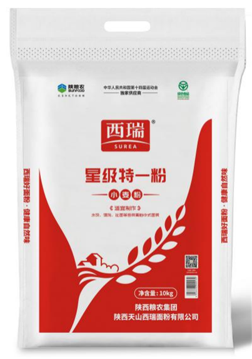 西瑞星级特一粉是国家绿色认证A级的明星产品,是中华人民共和国第十四届城市运动会指定产品。产品采用关中优质小麦基地所产小麦为原料,提取小麦精华麦芯部分,轻剥细研而成,面团耐发耐放、制作面食不沾手、制品色泽自然、口感筋道,属家庭首选的健康面食产品。