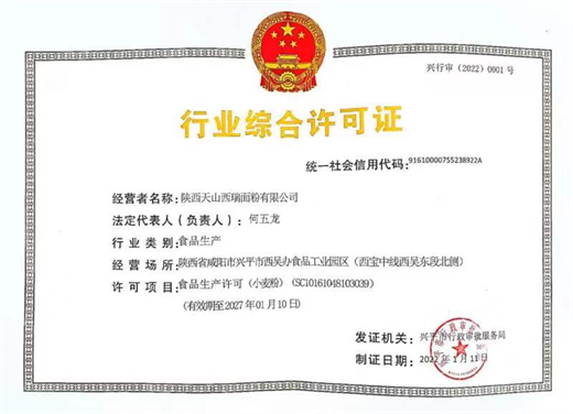 在各部门积极配合下,西瑞面粉公司按照生产许可证审核要求展开现场自查、整治,资料整理、归集、审核等前期准备工作,在符合审查各项条件后,2021年11月向食品监管网申请续换证并审核通过。由于受疫情影响,取证关键环节现场审核不能实施,通过我公司多方联络,在兴平市行政审批服务局强有力的支持下,换证取证工作得以顺利落地。