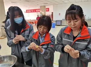 元宵是今天的主角,作为元宵节的必备美食,承载着对团圆幸福的希冀。在餐厅内,大家和面、捏面团、包元宵,在一片热闹声中,圆滚滚的元宵整齐的排列在盘中。正值北京冬奥会,有的员工还自制出“顶流”冰墩墩元宵,创造专属于壬寅虎年元宵的浪漫;在团扇制作环节,大家充分发挥想象力和绘画能力,将原本素白的扇面点缀装扮,赋予生机。