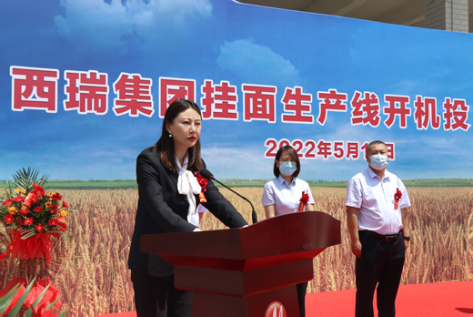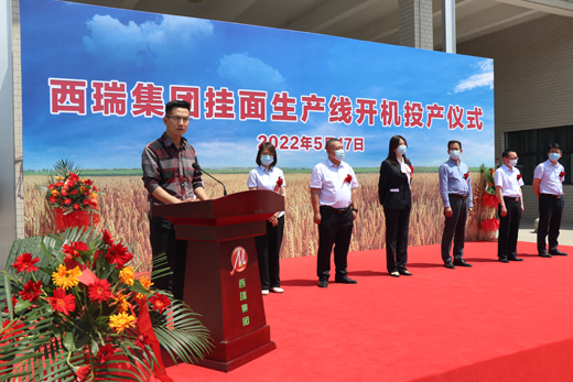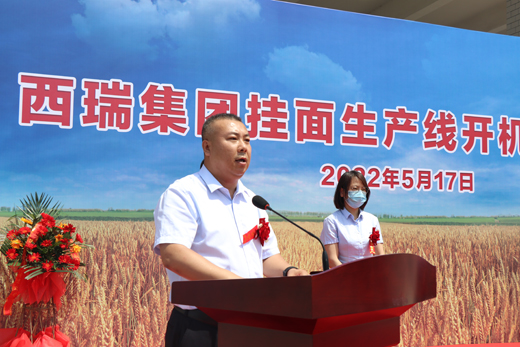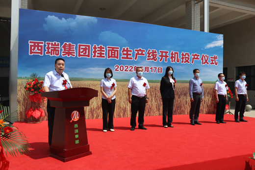 郝晓华对挂面生产线的正式投产致以热烈的祝贺。她表示,挂面车间的投产,是西瑞集团坚决贯彻落实陕西粮农集团“1355”战略目标的重要举措,是企业适应市场化需求不断延伸产业链条、不断践行国企担当提升民生保障能力的有效途径,是做精面粉加工、向食品领域开疆拓土的又一里程碑。她希望,西瑞集团坚定信心、借势而动,做强粮油工业,聚焦面粉加工持续延链扩圈,成为“西部食品领军品牌”,为陕西发展、为粮农集团发展做出应有贡献。