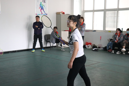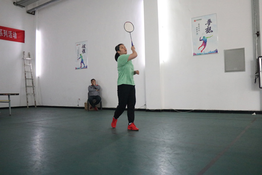 参赛选手抽签分成四组进行单打比赛,4人一组,两两对决,获胜者角逐小组第一,四位小组第一按照三局两胜制两两决战,现场时而欢声笑语、时而紧张激烈。球技平平的参赛者,以“友谊第一、比赛第二”为宗旨,积极奋战球场,以赛交友;具有专业水平的参赛者,八仙过海、各显神通,打球快、狠、准,两两之间棋逢对手、不分上下;选手打的酣畅淋漓,观众看的惊心激动,最终王晨、冯敏、岳宁莉获得女子羽毛球单打冠、亚、季军。