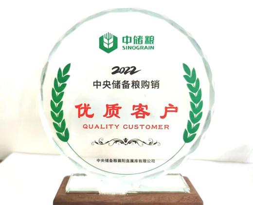 近日,陕西天山西瑞面粉有限公司被中央储备粮襄阳直属库有限公司评为“2022中央储备粮购销优质客户”,并领取奖牌。