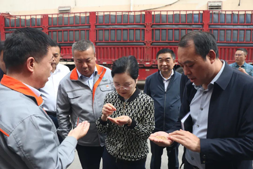 5月23日,省委农办主任、省农业农村厅党组书记、厅长孙矿玲一行赴陕西粮农西瑞兴平园区调研粮油生产加工及储存情况。咸阳市市委副书记贾珉亮,兴平市市长马鸿,粮农集团副总经理王军,西瑞集团董事长何五龙、总经理陈俊刚陪同调研并介绍有关情况。