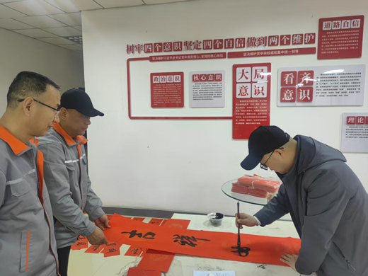 活动现场,集团内热爱书法的领导、职工齐聚一堂,挥毫泼墨,大红的宣纸,馥郁的浓墨,随着书法爱好者游龙似的笔锋,呈现出一幅幅包含着吉祥寓意的春联:“祥蛇送喜福星照 暖鹃啼春好运连”“喜帖春联副副春联抒斗志 观燃鞭炮声声鞭炮震豪情”……,字里行间满是对新一年的美好期许。围观及领取春联的职工兴致勃勃、不断发出赞叹:“手写的春联就是有温度,年味一下就出来了!”“带着同事写的春联回家,幸福满满!”……,现场气氛热烈而温馨。