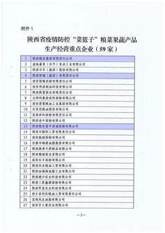 2月19日,陕西省农业农村厅公布民生保供企业资质证明,审核认定3类141家企业为省疫情防控民生保供重点企业。其中,陕西省疫情防控“菜篮子”粮菜果蔬产品生产经营重点企业59家,陕西粮农集团有限责任公司、陕西西瑞(集团)有限责任公司及下属子公司陕西粮农富平西瑞面粉公司名…